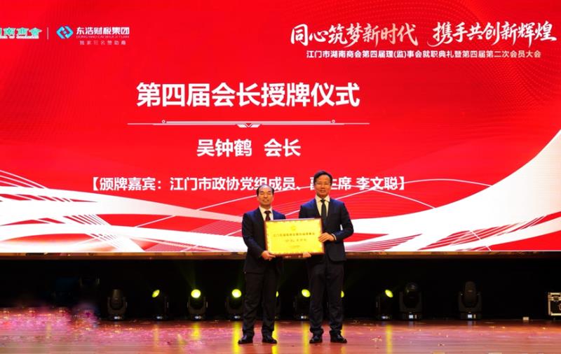 “多年来,商会始终以乡情为纽带、以服务为核心,为在江湘商搭建起交流合作的坚实平台,也为湘粤两地的经济交流架起了畅通的桥梁。”吴钟鹤表示,新一届理事会将继续秉持“团结、服务、发展、共赢”的宗旨,持续深化资源整合,搭建更高效的会员互助平台,助力企业纾解发展难题,同时,积极把握粤港澳大湾区建设机遇,主动对接“百千万工程”战略部署,推动湘商企业融入地方发展大局,并投身乡村振兴、助学济困等公益事业,扎实推进千企助力“百千万工程”,让湘商精神在侨乡沃土扎根生长,以实际行动助力江门区域协调与高质量发展。