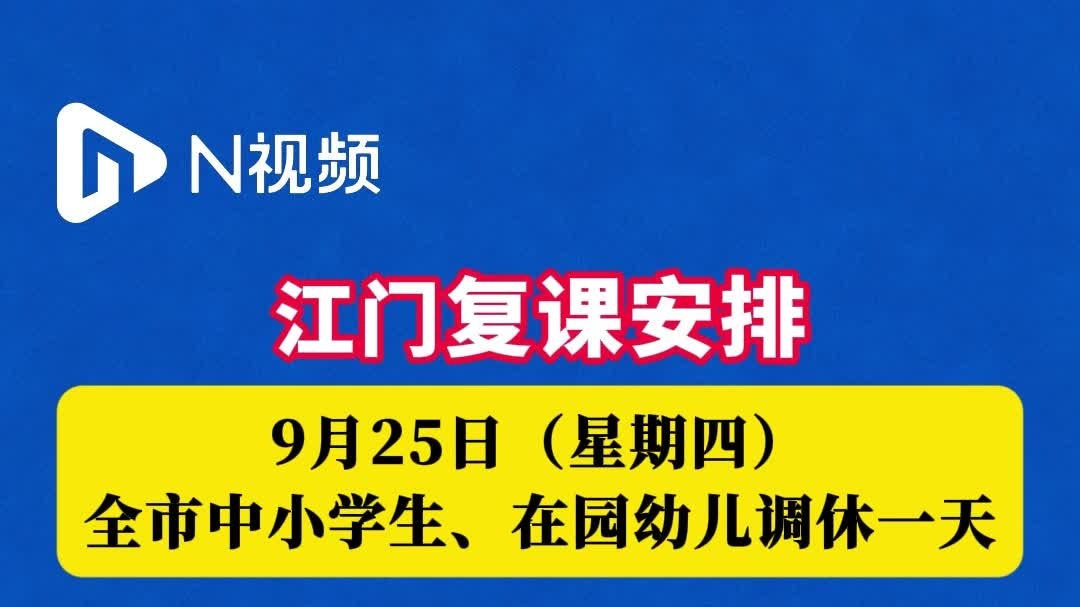 9月25日(星期四)江门全市中小学生、在园幼儿调休一天