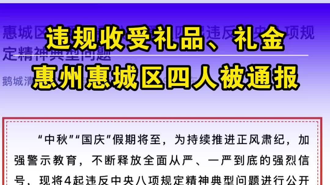 违规收受礼品、礼金!惠州惠城区四人被通报