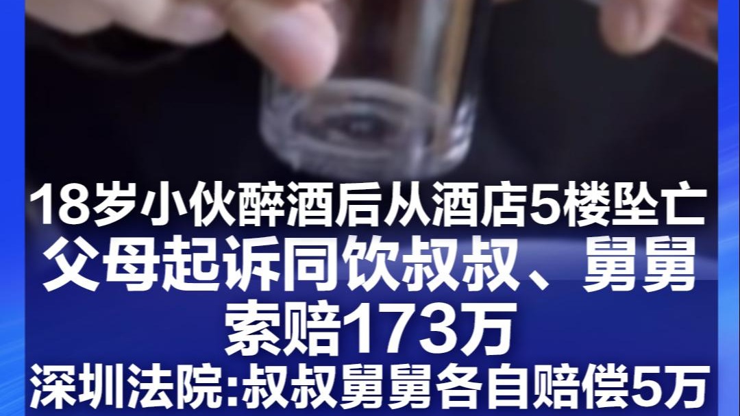 18岁小伙从酒店坠亡,父母起诉同饮叔叔、舅舅索赔173万