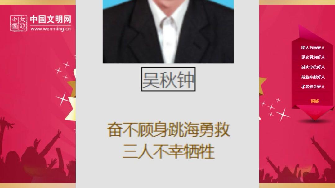 英勇救人不幸牺牲,汕头吴秋钟获评“中国好人”