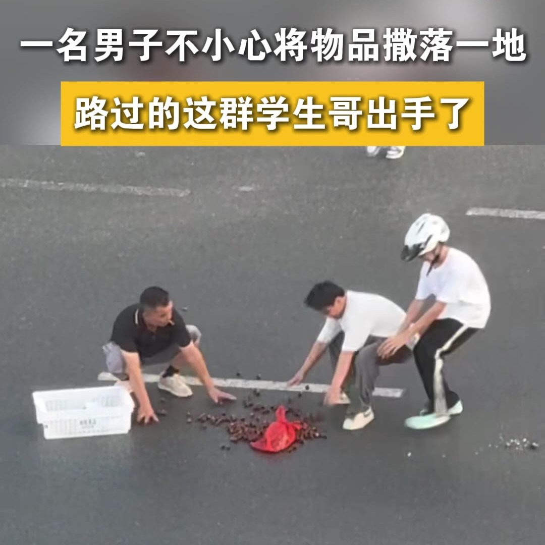 河源一男子在路中央默默收拾撒落的物品,突然间,他们出现了