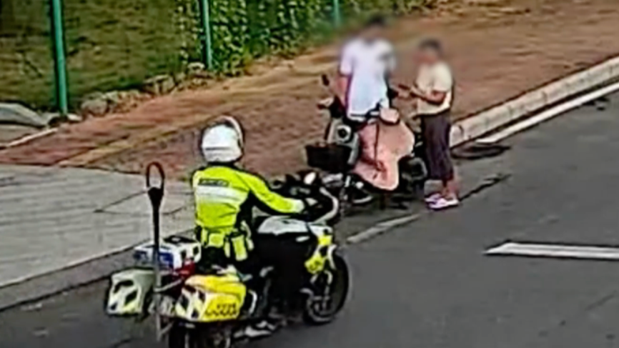 母亲送儿子去城轨站中途车爆胎,东莞铁骑将孩子护送往车站