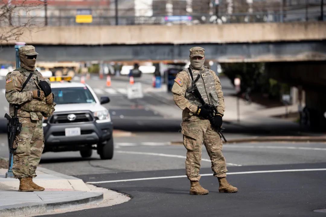 目前,国防部计划派往华盛顿的国民警卫队队员数量继续定格在25000人,余下兵力将在19日晚前部署完毕。记者走访过程中看到,华盛顿市区中执勤的国民警卫队相比前几日更加密集。