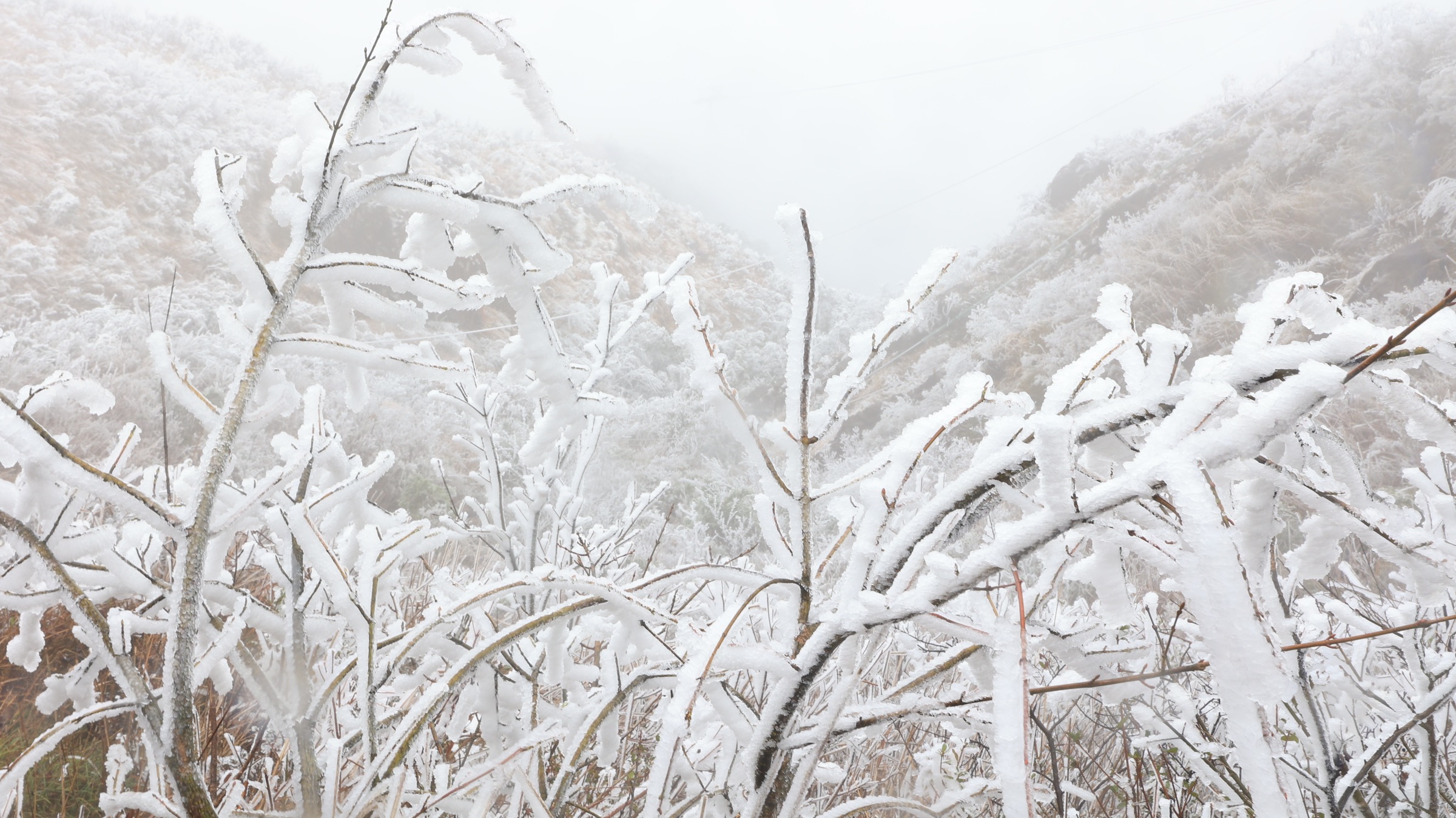 清远金子山入冬化身“冰雪世界”,绝美雾凇冰羽晶莹