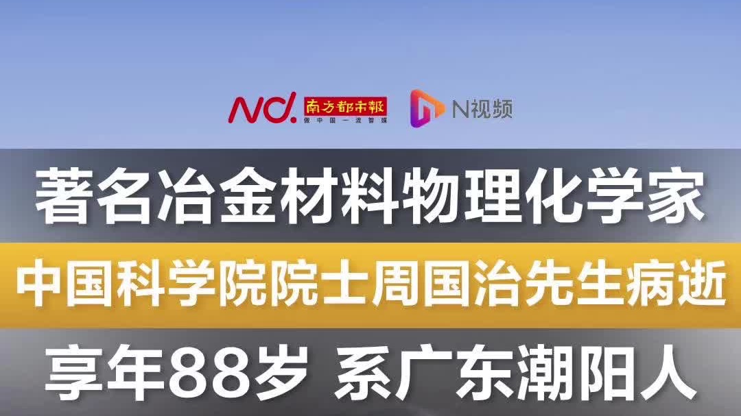 著名冶金材料物理化学家、中国科学院院士周国治先生病逝