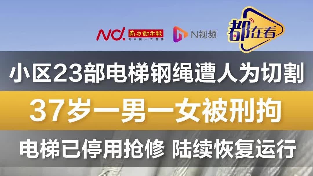 可怕!小区23部电梯钢绳遭人为切割,37岁一男一女被刑拘